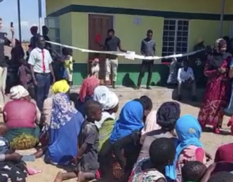 Viele Dorfbewohner waren trotz des Regens gekommen, um uns am neuen Chidowola Kindergarten zu begrüßen.